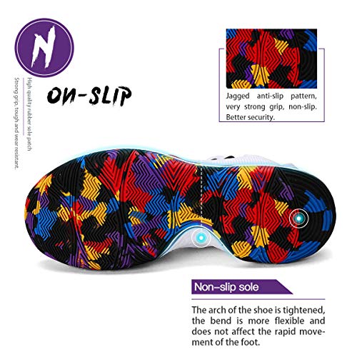 - 【Comfortable insole】Kid basketball shoes with soft insole provides an comfortable feel and fit.A wider-than-average toe box gives your feet room to breathe and enough toe spread for improved balance and stronger base to push off.