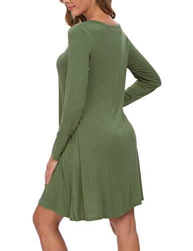 - Scoop neckline,Solid Color,Above Knee,Flowy Swing Loose Dress,two handy side pockets you'll love.This fashion dress can pair with legging,footwear-including ankle booties,,knee-high boots, flats or high heels!Can dress up or dress down .We Suggest you can pair wiht Winter Classic Tassel Plaid Blanket Scarf.