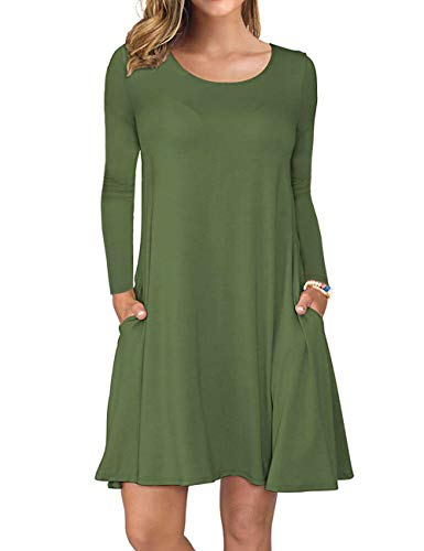 Details: Attention:The dress has registered US Trademark"AUSELILY",exclusively provided by AUSELILY only,and we did not authorize any stores to sell our items. If you find them below our listing, they are all COUNTERFEITER/FORGERY. And our lawyer will take legal action against those behavior! AUSELILY Women's Basic Long Sleeve Pocket Casual Loose Sundresses Good for Spring, Winter and Autumn , Party, club or even night out. Unique style,make you beautiful,fashionable,sexy and elegant. About Product: Fabric: Soft Fabric(average,soft,comfortable to wear). Flowy dress,Alines Casual Dress. Type: Tank dress,Long Sleeve Dress with Pockets Pattern Type: Plain Neckline: Round Neck Dress Length: Above Knee Sleeve Length: Long Sleeve Two handy side pockets you'll love. This is our size chart for your reference: Size Chart: S (US 4-6) Bust: 85cm/34.47" ;Length: 86cm/33.86" M (US 8-10) Bust: 90cm /35.43";Length:87cm/34.25" L (US 12-14)Bust: 96cm/37.8";Length:88cm/34.65" XL (US 16-18)Bust: 104cm/40.94";Length: 89cm/35.04" 2XL (US 20)Bust:112cm/44.1";Length:90cm/35.43" 3XL (US 22)Bust:124cm/48.82";Length:90cm/35.43" There is 2-3% difference according to manual measurement. Please check the measurement chart carefully before you buy the item. Notice: A:Hand wash, and can not be cleaned with chemical cleaning agents. B:Not machine washable and tumble. C:Take all measurements from the outside with the garment lying flat. D:Colors may appear slightly different via website due to computer picture resolution and monitor settings. All item quality can be guaranteed. Choose us, believe in us!If you have any questions with our products,feel free to contact us ,we will reach you at the soonest.