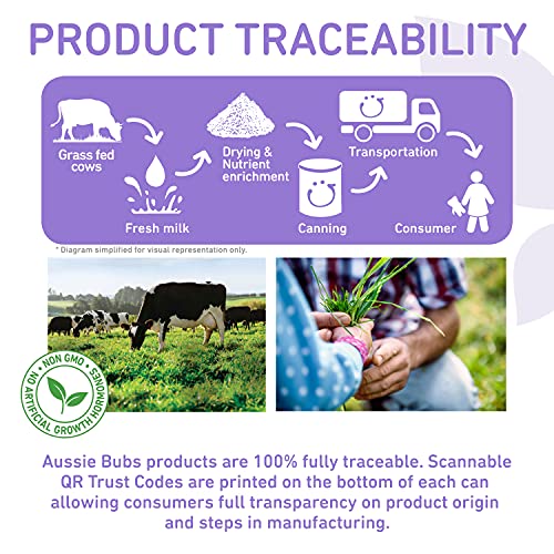- 365 Day Grass Fed Cows: Aussie Bubs Grass Fed Nutritional Milk-based Powder Toddler Formula is sourced from free range cows that graze outdoors 365 days a year, helping them produce high quality milk that is richer in Omega-3 fatty acids, Vitamin E and Beta-carotenes.