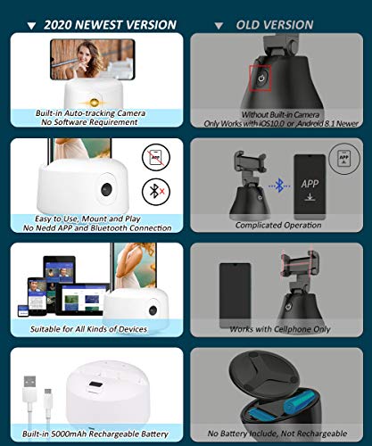 - 🌀 360° Rotation Auto Face Tracking - Free your hands with this 360° rotation auto face tracking camera stand. It is the perfect choice for Instagram, Facebook, YouTube, TikTok Video Vlogging, Live Video, live streaming, and more.