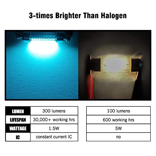 - 30,000+ working hours lifespan-25 times longer than halogens. Use for License Plate Lights, Dome Lights, Map Lights, Side Door Courtesy Lights, Trunk Lights, Cargo Lights.