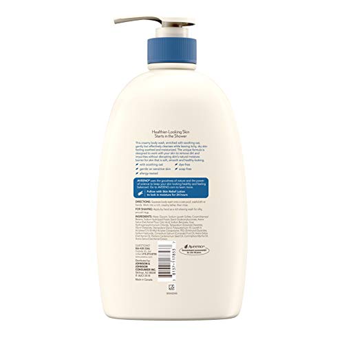 Details: Gently cleanse and moisturize dry, itchy skin with Aveeno Skin Relief Body Wash. This fragrance-free body wash is made with soothing oat and is gentle enough for sensitive skin. Its unique formula is designed to work with your skin to remove dirt and impurities without disrupting your skin's natural moisture barrier for skin that is soft, smooth and healthy-looking. From the dermatologist-recommended brand for over 65 years, this moisturizing body wash is allergy-tested, soap-free and dye-free, and is suitable for daily use.AVEENO uses the goodness of nature and the power of science to keep your skin looking healthy and feeling balanced. Follow with Skin Relief Lotion to lock in moisture for 24 hours.
