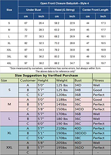 - Package Content: 1 x Women Lingerie Babydoll, 1 xG-String (One customer said she was 5‘tall 110 lbs and a 32b, Small was perfect for her petite size)