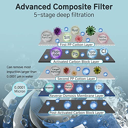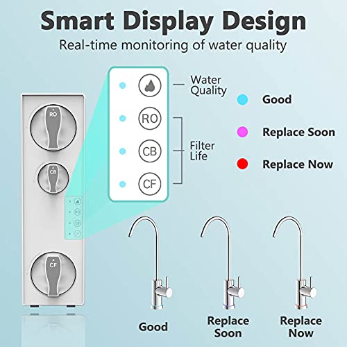 - 1.5:1 Low Drain Ratio: The ultra-low waste water ratio saves water to the greatest extent while filtering water. The most advanced filtration technology is adopted to ensure the filtered water quality without excessive waste of water. Save more water than most RO filtration systems on the market. Save water bills for your family and avoid wasting water resources.