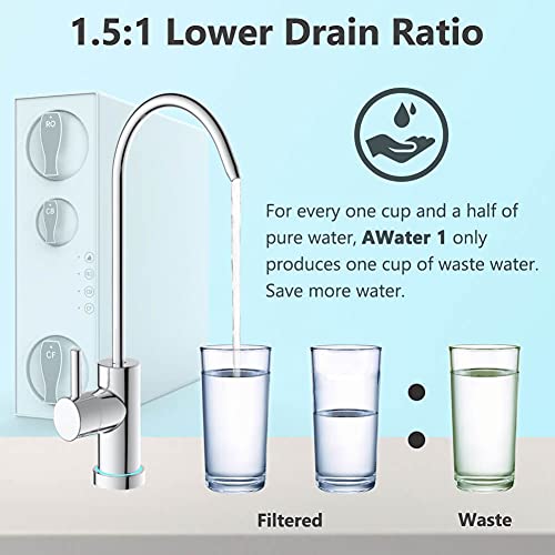 - Tankless Design: The compact AWater 1 RO water filter system with a small and convenient footprint takes up less space, saves storage under kitchen sink. No tank also means no more secondary pollution. Guaranteed to provide ultra-pure, safe and clean water for you and your family.