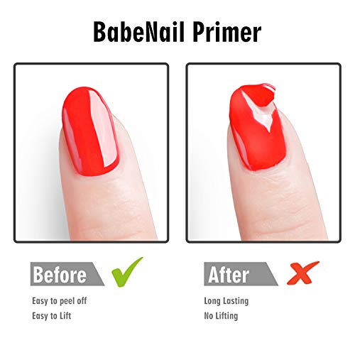 Details: HOW TO APPLY Step 1: Apply one coat of BabeNail PH Bond, wait 30 seconds for it to Air-dry(No need for curing under UV/LED light) Step 2: Apply one coat of BabeNail Ultrabond Nail Primer, wait 30 seconds for it to Air-dry(No need for curing under UV/LED light) Step 3: Apply BabeNail Base coat, and cure under UV lamp for 1 minute, LED light for 30 seconds. (Cure times vary per lighting system) Step 4: Apply BabeNail color in a thin application. Cure under UV lamp for 2 minutes, LED light for 30-60 seconds. (Cure times vary per lighting system) Step 5: Apply second coat, then cure under UV lamp for 2 minutes, LED light for 30-60 seconds. (Cure times vary per lighting system) Apply third coat if needed. Step 6: Apply BabeNail No Wipe Top coat and cure under UV lamp for 2 mins, LED light for 30-60 seconds. (Cure times vary per lighting system) HOW TO PREP 1. Trim and shape the nails, push back the cuticles gently. 2. File nail surface slightly, then buff a bit. 3. Wipe down the nails with gel cleanser or remover. 4. Use BabeNail PH Bond to dehydrate your nails, and BabeNail Acid-free primer for stronger adhesion to make Gel Polish last for 1 month and logner. Beware: It's important to ensure your nails are completely dry, clean and oil-free before applying any gel nail polish. Otherwise the gel nail polish would chip or peel easily in a short time.