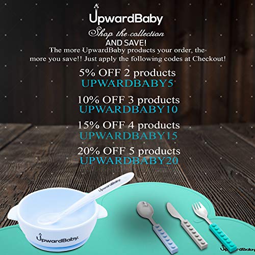 Details: UpwardBaby Baby Bowls with our improved suction base make for the perfect first bowl and premium spoon set for any baby just beginning to take their first bites on their own or with a little help! These strong suction bottoms will stick on all completely flat surfaces to ensure a completely no spill eating experience 100% of the time! Our bowls are completely BPA Free, FDA approved and completely Lead and Phthalate free! Dishwasher safe, microwave safe, you can't go wrong with this set!