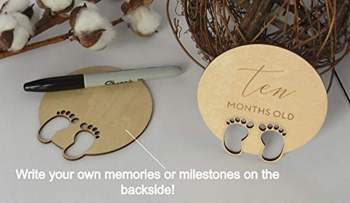 - ✅ SINGLE SIDED DESIGN– Set of 14- Includes: 12 Monthly Cards, A SPECIAL” I’m Here” announcement of new baby disc, and 1 week old milestone. Write your favorite memories, weight and height, or any baby monthly milestones on the back with a permanent marker as a special keepsake.