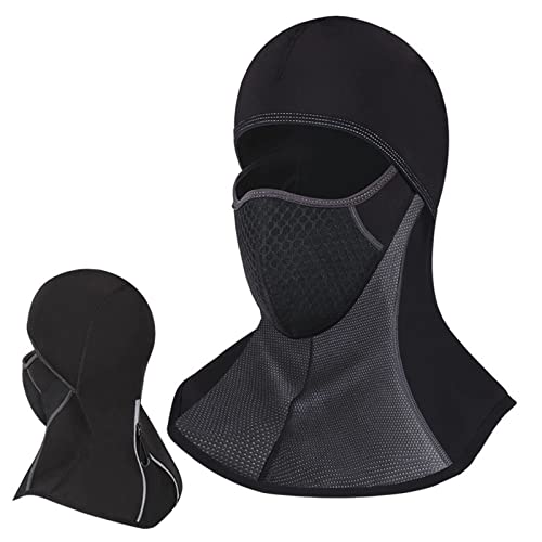 Details: Balaclava for Men, Black Windproof Full Face Bike Motorcycle Ski Balaclavas Covering, Thermal Fleece Liner Multifunctional Headwear Neck Warmer Scarf Mens Winter Hat under Helmet Skiing Cycling SnoodFeature:Quality mesh fabric with polar fleece lining, windproof, breathable and warm.With good stretch, fits most adults' head snugly without feeling tight.Fits comfortably under a hard hat or helmet without feeling bulky.Long length length to warm head and neck both during cycling.Great for hiking, climbing, skiing, cycling, motorbiking and other winter outdoor sports.Specification:Material: 100% polyesterSize: 45 cm * 28 cm.Season: Autumn WinterApplicable: Men, WomenPackage:1 x Black Full Face BalaclavaNote: Light shooting and different displays may cause the color of the item in the picture a little different from the real thing. The measurement allowed error is +/- 1-3cm.
