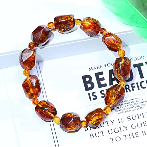 - đź’–Product parameters - The amber bracelet week length is 7-7.5 inches,weighs about 12g.Amber particles are made of elastic cords and stretchable. Suggestion to measure your wrist size when purchase.