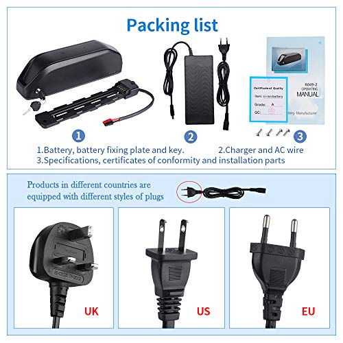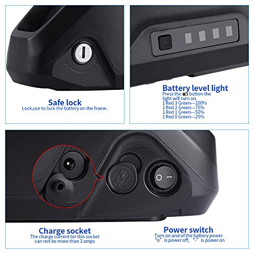 - 【High-end Quality】The lithium-ion battery is made of high-quality brand cells, with good safety performance.Every Lithium battery have pass the QC appearance and function test before shipment. The Ebike battery charge cycle exceeds 1000 times, life expectancy of up to 5 years.