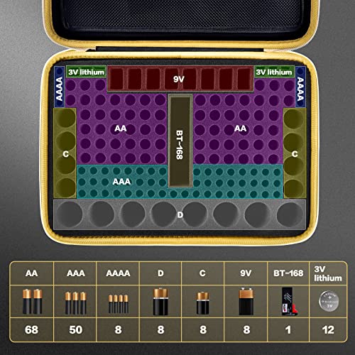 - Great case for organizing and storing batteries: This battery storage organizer neatly holds the batteries snugly in place within the foam pre-cut slots and keeps the contact ends from contacting each other, Great way to organize your batteries in one case. There is no need to worry about batteries rolling around in junk drawers and easy for you quickly identify the type of battery at a quick glance as separate area for different batteries pack.