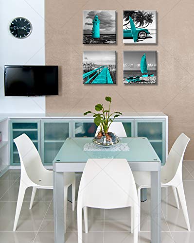 - Teal kitchen accessories and decor size:12x12inchx4 (30x30cmx4).office wall decor,coastal wall decor,nautical bathroom decor,bedroom accessories for teen girls/ women, beautiful poster canvas artwork has a strong sense texture and artistic sense, demonstrating its noble and elegant temperament and taste.