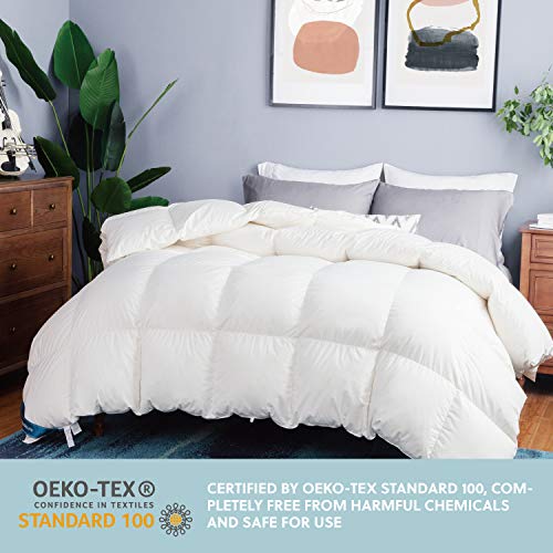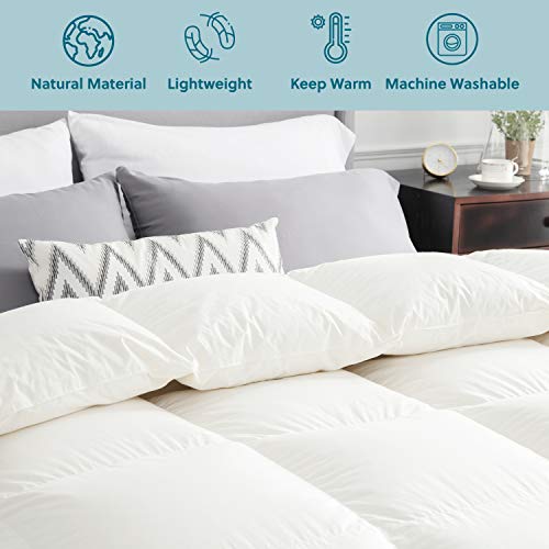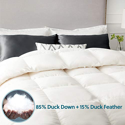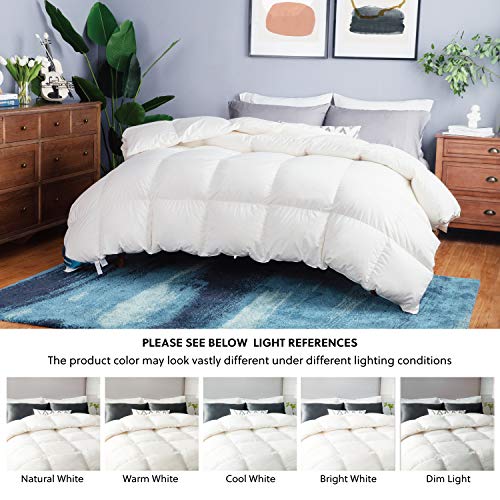 - HIGH QUALITY CONSTRUCTION: Covered in pure cotton and filled with a blend of 50 oz white down and feather, our bed comforter provides a supremely soft feel and breathable coziness.