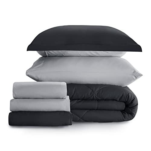 - What You Can Get: Bedsure Twin Size bed coverlet set includes 1 comforter (68"x88"), 1 bed skirt (75"x39"+15"), 1 flat sheet (96"x66"), 1 fitted sheet (75"x39"+14"), 1 pillowcase (20"x30") and 1 pillow sham (20"x26"), light gray on one side and navy on the other side. Since the bag comes in vacuum-sealed packaging, it is highly recommended to hang out the bedding set in the sun and gently tap it for increased fluffiness.