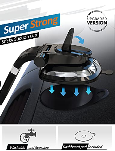 - UPGRADED SUCTION CUP - Upgraded super strong stickiness suction cup with the extra dashboard pad fits all dashboards with smooth surfaces, leather/faux dashboards. It is very easy to install with the unique suction cup (Less than a minute!), just make sure to remove all air from underneath before locking the lever.