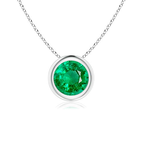 Details: This classic solitaire emerald pendant's beautiful design makes the center stone appear like it's floating on the chain. The lush green emerald is secured in a bezel setting. Crafted in platinum, this round emerald pendant is simple yet gorgeous.