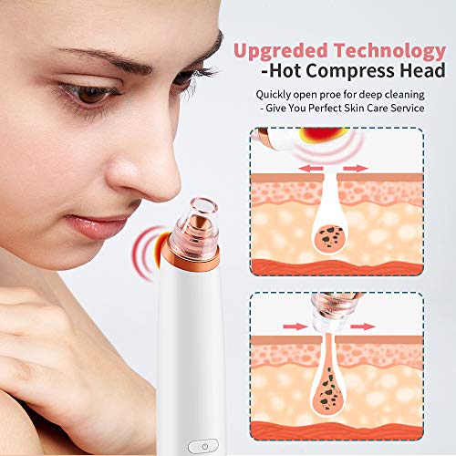 - ⭐【2020 UPGRADED HOT SENSE CARE TECHNOLOGY】Design with hot compress care and powerful suction, hot compress function to open pores and helpful to deeper cleansing of your skin. After much tests, using this blackhead pore remover vacuum for 2-5 weeks continuously, it can effectively remove blackheads, grease, whiteheads, dead skin and makeup residues.