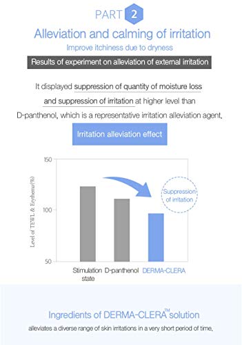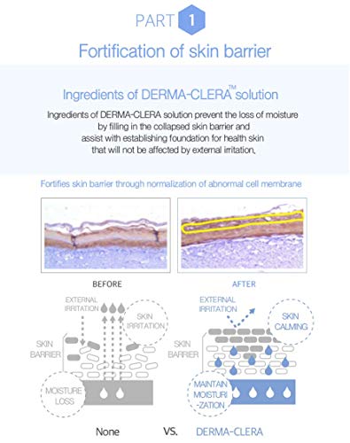 - Derma-Clera helps fortify the skin barrier, calms the skin, maintains moisture level, alleviates and calms irritation, and helps skin regenerate.