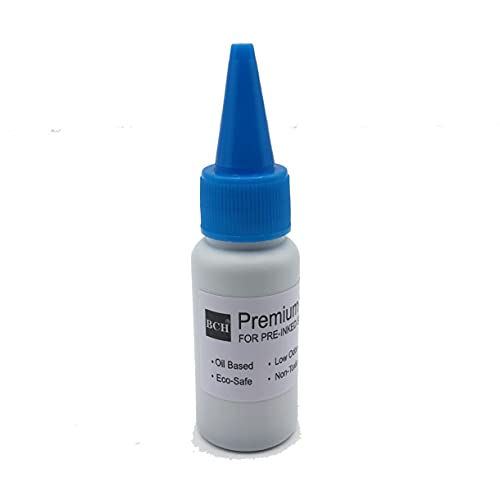 Details: There are two kinds of stamps: self-inking stamps- which you add ink by yourself. These inks are usually water-based. The second type is pre-inked stamps. These inks are generally oil-based. Again, check with the manufacturer and make sure which type your stamp uses. General Instruction The oil-based ink will be absorbed into either rubber or sponges. The process is a lot slower than water-based ink. However, the ink is designed to last a long time in the open air, so be patient. You will either find an absorbent rubber or refill sponge in your equipment. For example, if you work on a typewriter ribbon that doesn't have those, the ink needs to be absorbed by the whole ribbon. If your stamp doesn't have a refill sponge, like in the video below, you can drill a hole and create a cavity to fill the ink and let the ink be absorbed over time. GREAT VALUE. Replenish these for a fraction of the cost of new ones: foam ink pads, felt pads, pre-inked stamps, oil-based print ribbons. NON-TOXIC. Oil-based, low odor, skin-safe and environment-friendly. DURABLE AND PERMANENT CRISP AND CLEAR PRINTS. Waterproof after drying. Outdoor-Grade weatherproof. None-fading. Made of sturdy pigment polymer resin, it doesn't fade under direct sunlight. EASY APPLICATION. Put few drops of ink on a dried stamp pad. Works with most pre-inked stamps if your stamp is "nonrefillable" Google search Jfp307xBlmA. MULTI-USE. The ink can also be applied to Dot Matrix Printers. Google "Dot Matrix Ribbon Refill BCH Oil Based"