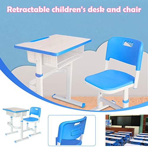 - 📚📚 ADJUSTABLE HEIGHT - The height of the desk and chair can be adjusted to suit fast-growing children. This ergonomic design helps children to have a perfect sitting position and gives your children a better sense of comfort.