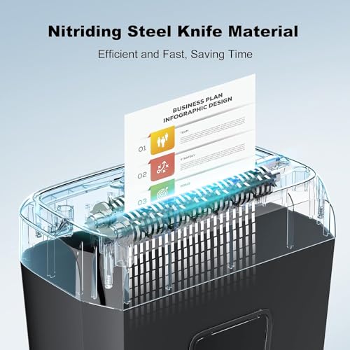 - 【Easy Operation & Safe Protection】Auto start/stop and manual-reverse function protect the paper shredder from the frustration of paper jams. Overheat protection function tackle the trouble in using the shredder and prolong its lifetime. The document shredder will stop working once you lift the head, keeping you safe.