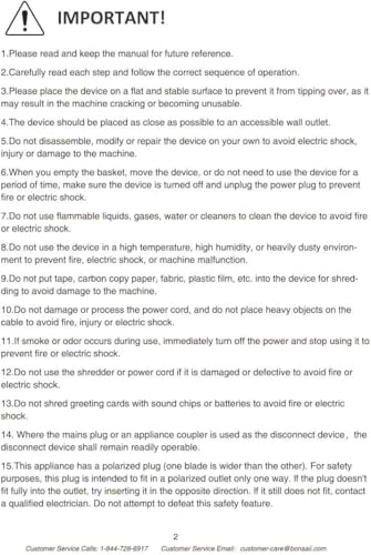 - 【Professional Service】Bonsaii provides 1-Year limited Protection for your shredders for home office heavy duty. If you have any questions, please get in touch with us. Important Note: We test every shredder before shipping, which means you may see some paper shreds from the testing.