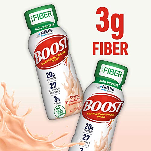 - BOOST HIGH PROTEIN with FIBER: BOOST High Protein with Fiber nutritional shakes have 20 grams of protein for muscle health, 3 grams of fiber for digestive health plus 27 vitamins and minerals with 240 nutrient-rich calories for energy.