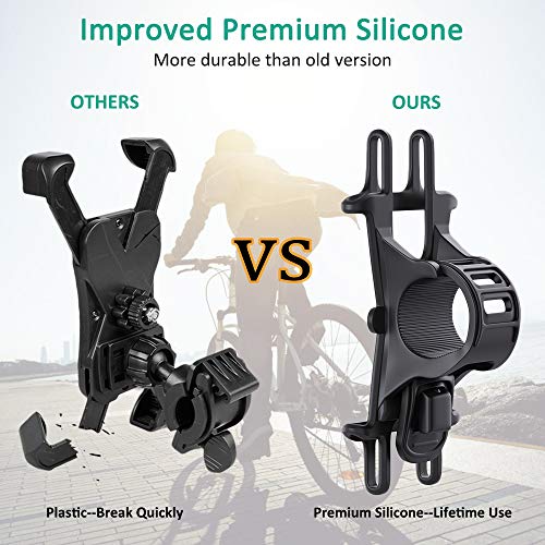 - ☑Sturdy & Secure: Made of improved premium silicone, both of flexibility and firmness perform better than the old version, absorbing all shocks as well as avoids phone surface scratches. Elastic silicone bands tie your phone firmly to the bike even on a bumpy rocky road.