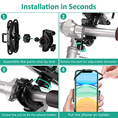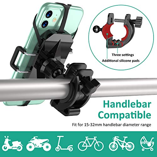 - Secure & Anti-Shake: The bike phone holder comes with premium silicone net and non-slip PU pad, which not only effectively prevents your phone from scratches but also firmly grips your phone. Besides, lateral arms design provides double protection, ensuring your phone doesn't shake and wobble when riding.