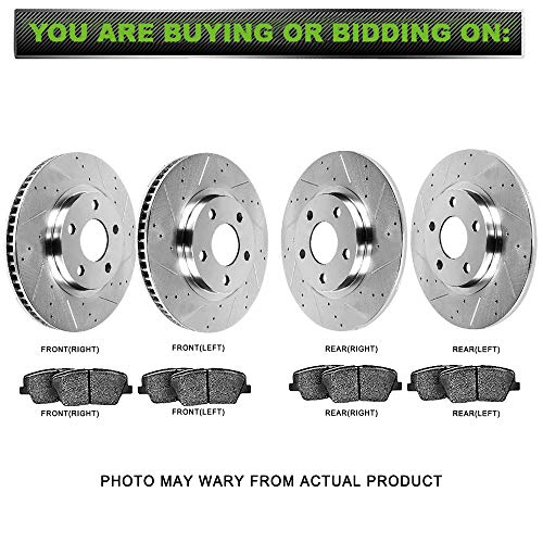 - PREMIUM BRAKE ROTORS - Brake rotors drilled & slotted designed to reduced heat buildup, maintains clear contact between brake rotors and ceramic brake pads, reduce abnormal sounds, improves 20% braking performance