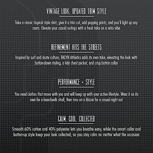Details: About Us: Brooklyn Athletics apparel draws inspiration from the East Coast surf and skate scenes. Our clothing is designed for individuals whose lifestyles are active, functional and adventurous. Designs feature modern and innovative details that appeal to everyone. Athletics meets aesthetics, straight out of Brooklyn. Features include street inspired silhouettes, mesh lining and lightweight reflective materials with perfectly placed pockets and drawstrings. Our clothing is meant to go from running along the city streets in the morning to meeting friends for drinks after work, without having to change your outfit. When you want a little update to your basic casual shirt, check out our reverse print Hawaiian shirt. The vintage inspired faded design on this shirt is from a unique reverse print on the inside. This Hawaiian shirt is perfect for casual wear, everyday use, lounging around the house, or anything in between. This shirt for men features a modern fit, button down front, front utility pocket and scoop hem. Available in a variety of colors and sizes, you can definitely find a shirt that you'll love. Colors and Sizing Available in a variety of colors and sizes, you can definitely find a shirt that you'll love. Available in regular sizes. (Small, Medium, Large, X-Large, 2X-Large) To ensure a right fit, we recommend measuring a shirt that fits you perfectly. Compare your measurements to our size charts above in the gallery and order your shirt based on the fit and comfort you prefer. If measurements are between sizes, we recommend ordering the next size larger.