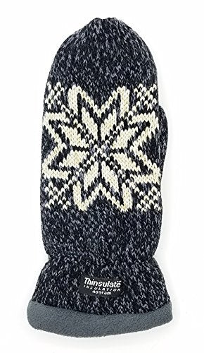 This Ladies mitten made of 100% acrylic and the lining is fleece with Warm Thinsulate,the thinsulat Insulation,made by 3M Corporation, makes it possible to get out and enjoy the cold.