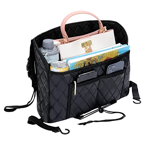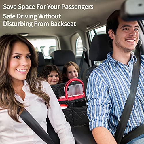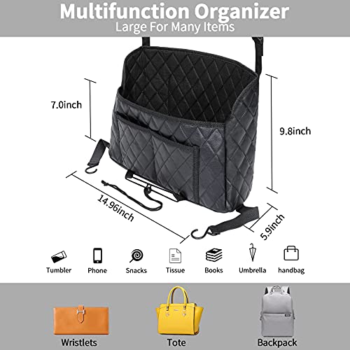 - π[Extra Storage Space]π This purse holder for car provide extra storage space by covering the interval between the front two seats, keeps your seats open for passengers. Having one deep compartment and 3 extra pockets, the car purse holder can store large purse as well as lots of other stuff, (such as sunglasses, tissues, face masks, snacks etc.). Keep things neat and handy.