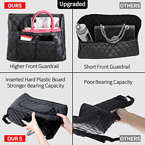 - π[Upgrade Design]π The purse holder for car helps to store more things than others with higher front guardrail. It's made of durable PU leather, and there's PE board in the bottom to provide stronger car organizer and storage capacity.