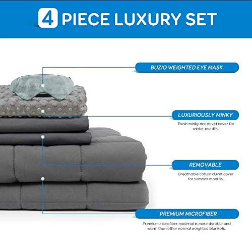 - 【Deluxe 4-Piece Set】Include ONE premium 7-layer 15 lbs weighted blanket, ONE breathable cotton duvet cover for summer use when A/C is on, ONE plush minky dot cover to keep warm in winter and ONE weighted sleep mask to block light and relieve eye pressure when napping. This Deluxe Set is a perfect gift idea for Thanksgiving and Christmas, and it is suitable for all seasons use
