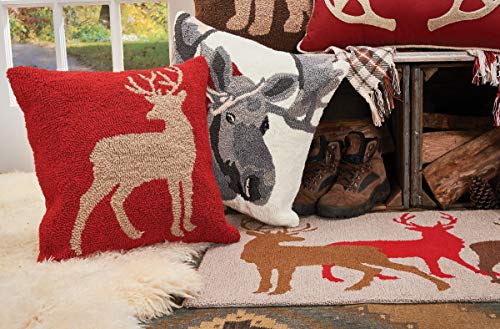 Details: Set the scene in your favorite lodge-themed space or cabin with the Buck Hooked Pillow. With a unique hooked texture, this simple pillow features an austere buck on a crimson background. Crafted with acrylic yarn on cotton canvas, secured with a zipper closure and a removable polyester insert for easy care.