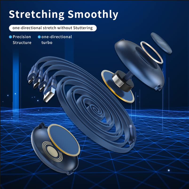 - 【 FLEXIBLY RETRACTABLE 】: The design of internal structure of the twin-turbo brings a smooth stretching experience and provides unlimited fixed-length nodes, which makes you adjust the length freely up to 110 cm (3.6 ft). This retractable charging cable passes 3000+ tensile tests with the 12- month warranty.
