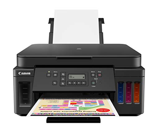 - With an impressive high page yield, print up to 6,000 Black text pages or 7,700 Color pages per each full ink bottle set.(2)The PIXMA G6020 MegaTank All-In-One Printer uses both pigment-based and dye-based ink. The pigment-based black ink formulation allows for long lasting and sharp black text. The dye-based ink formulation allows for vibrant and colorful images.
