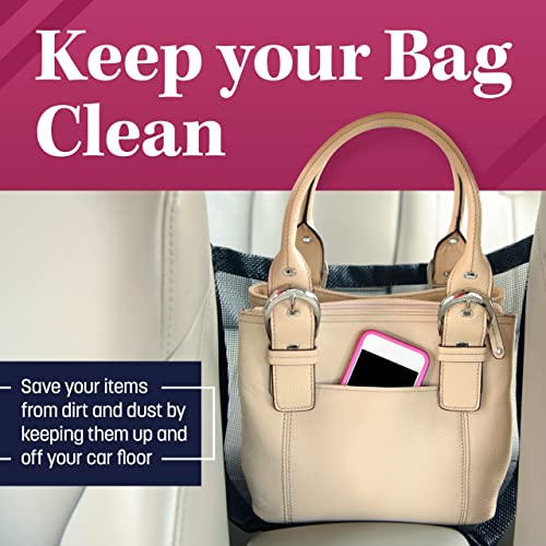 - MULTI-PURPOSE - This mesh hammock-style car pocket handbag holder holds all bag sizes, and is also great for storing small items like a phone, umbrella, book or other purse accessories.
