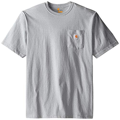 Details: Carhartt short sleeve work wear pocket t-shirt is an all-purpose work shirt that is perfect in warm weather or for layering when it gets cold. Made of 6.75-Ounce, cotton jersey knit and features a rib-kniit and a left chest pocket Also been designed with side-seamed construction to minimize twisting and maximize comfort. Non-Chlorine Bleach