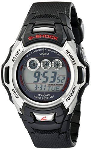 Details: Product Description As an upgrade to it's predecessors, the new GWM500 add the ability to connect with the radio transmitter in China to update the watchs' time & date in addition to adding an additional 18 cities added to the world time mode, for a total of 48-cities. The watchs' time memo function has been replaced with a countdown timer. Black resin band digital watch with neutral face.Module: 3405 Brand Story Casio With the launch of its first watch in November 1974, Casio entered the wristwatch market at a time when the watch industry had just discovered digital technology. As a company with cutting-edge electronic technology developed for pocket calculators, Casio entered this field confident that it could develop timepieces that would lead the market. Today, Casio is focusing its efforts on solar-powered radio-controlled watches: the built-in solar battery eliminates the nuisance of replacing batteries, atomic timekeeping means the users never have to reset the time. Recently, Casio launched a series of Bluetooth watches that sync to the users cell phone to automatically update the time. Casio is always moving time forward. From the Manufacturer New and improved!!! The shock-resistant design of the casio men's g-shock atomic tough solar watch makes it a one-of-a-kind timepiece. This tough watch is constructed with a durable black resin case, a stationary stainless steel bezel, and a black resin wristband with an adjustable buckle clasp for a personalized fit. A durable mineral window shields the digital-gray dial face, which features the time display, as well as the day, date, and month. The digital-quartz-powered watch includes adjust, mode, split/reset, and start/stop function buttons to fit your activity, as well as subdials that track battery life. It is water resistant to 660 feet / 200 meters.