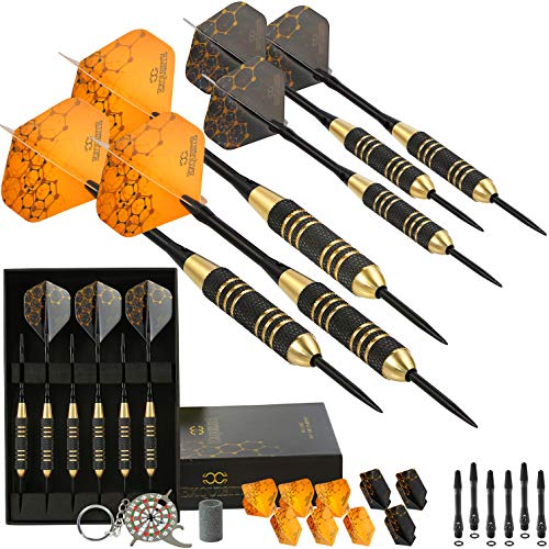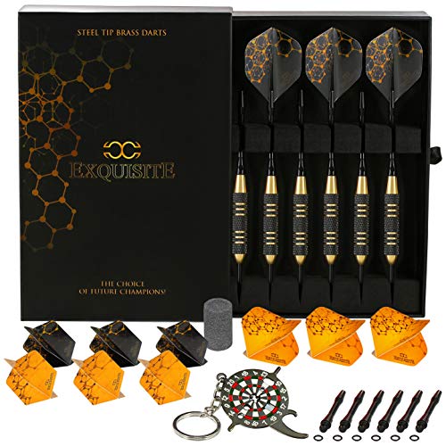 - SUPERIOR STEEL TIP DARTS SET includes: 6 x 22g High Quality UNBREAKABLE BRASS BARRELS + 12 EXTRA DURABLE Aluminum Shafts in two lengths (6 x 35mm/6 x 48mm) + 12 O-RINGS to Prevent Loosening + 12 Flights in two different shapes and designs (6 Standard/6 Slim) + Darts Multi-Use Tool + Darts Sharpener and SLIM CASE.