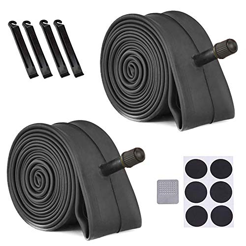 - PACKAGE INCLUDES - You will get 2 pack bike tubes, 4 nylon plastic tire levers&6 self-adhesive round patches at one buy, tire levers attached,can let you easily get your tube out from the tire when changing the tube.