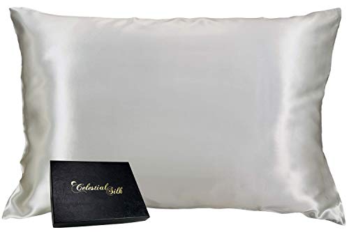 Details: Celestial Silk pillowcases are made with 100% mulberry silk. Silk pillow cases breathe easily and are naturally hypoallergenic, making them the perfect choice for allergy sufferers. Dermatologists, hair stylists and beauticians recommend silk pillowcases to keep hair and skin moisturized. Using silk pillowcases is a natural beauty technique that provides results while you are sleeping. Not only will silk pillowcases help you achieve sleeping beauty status, but with the luxurious caress of silk, you will feel like royalty. Caring for silk is relatively simple. Our pillowcases are machine washable in cold water on the delicate cycle. Either line dry or machine dry on delicate cycle. To maintain the silky luster without wrinkles, promptly remove from dryer when 90% dry, or iron using the silk setting.Includes one zippered silk pillowcase: King (20"x36") or Queen Sized pillowcase - 20" x 30" - which easily accommodates both standard and queen sized pillows.