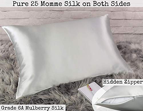 - The most luxurious silk of all - Pure 25 Momme Mulberry silk. Compared to 19 Momme, 25 Momme silk has almost 30% more silk per square inch. Silk's natural anti-aging properties help keep skin moisturized and hair smooth.