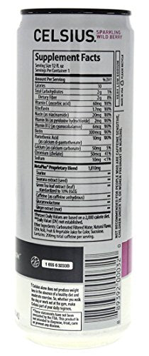 Details: CELSIUS. Live Fit. A uniquely blended formula with healthy energy and key vitamins make CELSIUS an ideal pre-workout drink. It’s low in sodium and contains zero sugar, no aspartame, and no artificial flavors, colors, or preservatives. CELSIUS energy drinks are also Certified Vegan, Kosher, and non-GMO. Its proprietary formula contains green tea extract and EGCG. It also includes guarana seed extract, ginger root for flavor and digestion, vitamin C to support your immune system, vitamin B for energy production, and chromium to help control hunger.