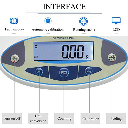 - Multi-Advantages: Our lab scale features automatic fault detection, over-load alarm, a large easy-to-read LCD digital display, and fast accurate readings. Also with the advantages of accurate weighing, fast stability, simple operation and complete functions.
