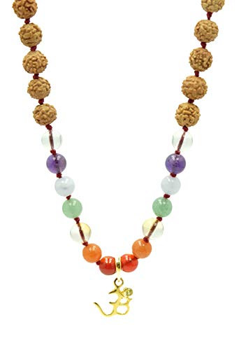 Details: Chakra Mala is a playful mala of many colored stones in colors corresponding to the chakras. When all combined, these stones give a multitude of meanings and energies, capturing the light and the playful dance of your day. Features gold plated om pendant. The Rudraksha bead is the heart of Aum Rudraksha Designs creations, bringing today’s world the wisdom and power of the ancient sages in the form of contemporary malas. Adorned with rudraksha seeds, each piece is handcrafted, blessed and designed in Bali. The Rudraksha beads we use are grown on sustainable plantations in South East Asia and are authentic. The stones we use together with our rudraksha beads in malas and jewelry are highest quality and are only those that have power and healing aspects. This is a major part of what we are about. We check the vibration (power) of our beads, as many have a higher vibration than others and we use the best in our mala jewelry. The Rudraksha bead we mainly use is five mukhi representing lord Shiva. In our gold work we use top quality 22K Gold Plated Silver. For silver we use highest quality 92.5% Sterling. Rudraksha beads are sacred and need to be treated with respect and care. Wash them once in a while to remove dirt and dust. Oil them with coconut or sandalwood oil to preserve them. They will turn darker with your own body oil when wearing them. This is the desired effect. Take them off when you sleep.